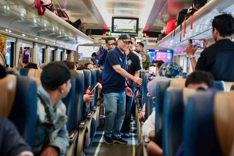 Sebelum melepas keberangkatan, Ahmad Luthfi menyempatkan diri menyapa para pemudik di setiap gerbong. Ia berjalan dari gerbong satu ke gerbong lainnya, berbincang langsung dengan para penumpang sekaligus membagikan souvenir kepada peserta mudik gratis.