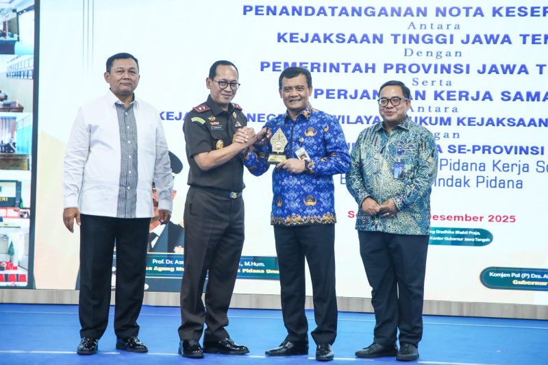 SEMARANG – Pemerintah Provinsi Jawa Tengah bersama Kejaksaan Tinggi Jateng menandatangani nota kesepahaman (MoU) pelaksanaan pidana kerja sosial sebagai implementasi UU Nomor 1 Tahun 2023 tentang KUHP.